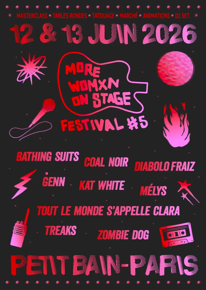 Sans ostraciser qui que ce soit, More Women On Stage s’emploie à présenter (et démontrer) que le rock est aussi une affaire de femmes. En témoigne ces deux soirées du 12 et du 13 juin au cours desquelles des formations exclusivement féminines feront cracher les amplis d’un déluge de watts.